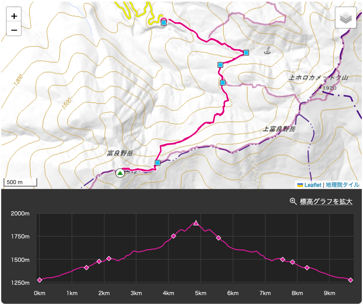 一年振りの富良野岳、登山自体もひと月ぶりです。早朝に登り始めたこともあり涼しくてスイスイと足が運ぶので「こりゃ富良野岳から上ホロカメットクまで縦走できるかも」と思っていたのですが、案の定気温の上昇と日頃の運動不足が祟り山頂下辺りでバテバテになり結局ピストンになりました。